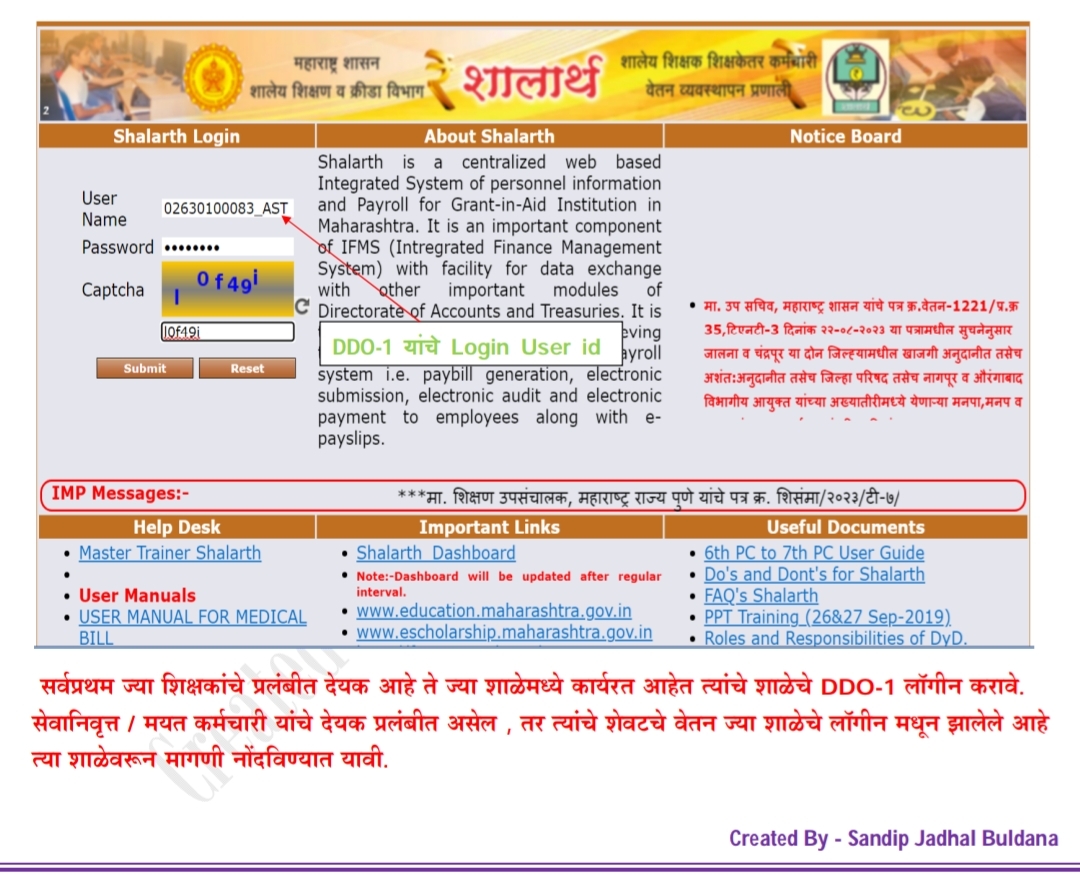 सर्वप्रथम ज्या शिक्षकांचे प्रलंबीत देयक आहे ते ज्या शाळेमध्ये कार्यरत आहेत त्यांचे शाळेचे DDO-1 लॉगीन करावे.